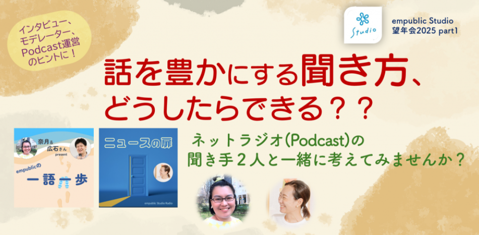 「聞き手」であるお二人をゲストに、どのように話を聞いているのか、そのためにどう準備し、何を心掛けているのか、経験をシェアいただきます。